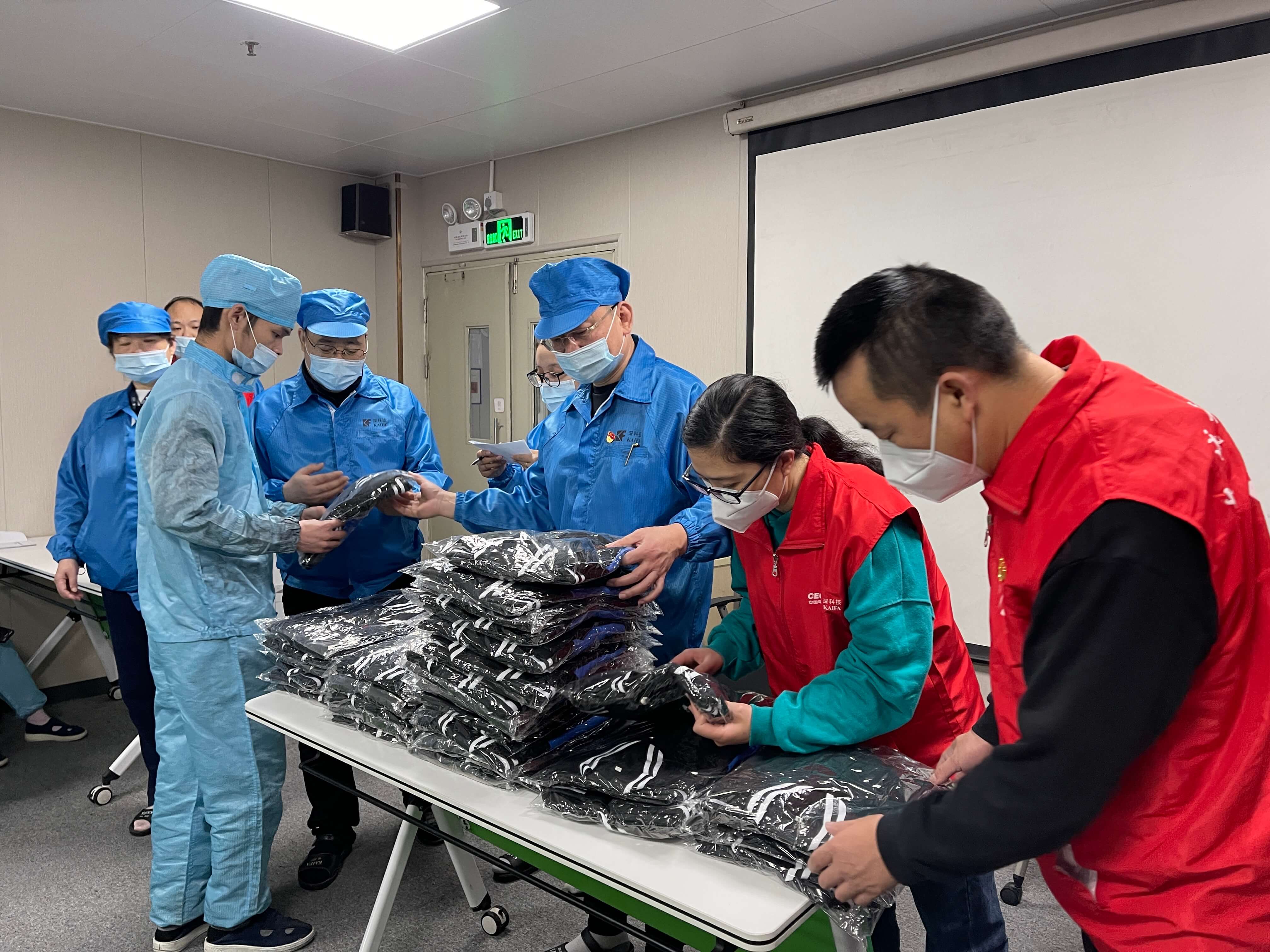 既送清凉,又送温暖,进入封控管理的第4天,深圳石岩的天气由温热骤然到冰凉 神马电影免费观看,前几日发出的“送清凉”T恤43件已不能御寒,公司工会连夜整备“送温暖”长袖会员服及厚装马甲57件,发放给仅穿短袖的产线员工,工业园管理处,政府派驻人员。